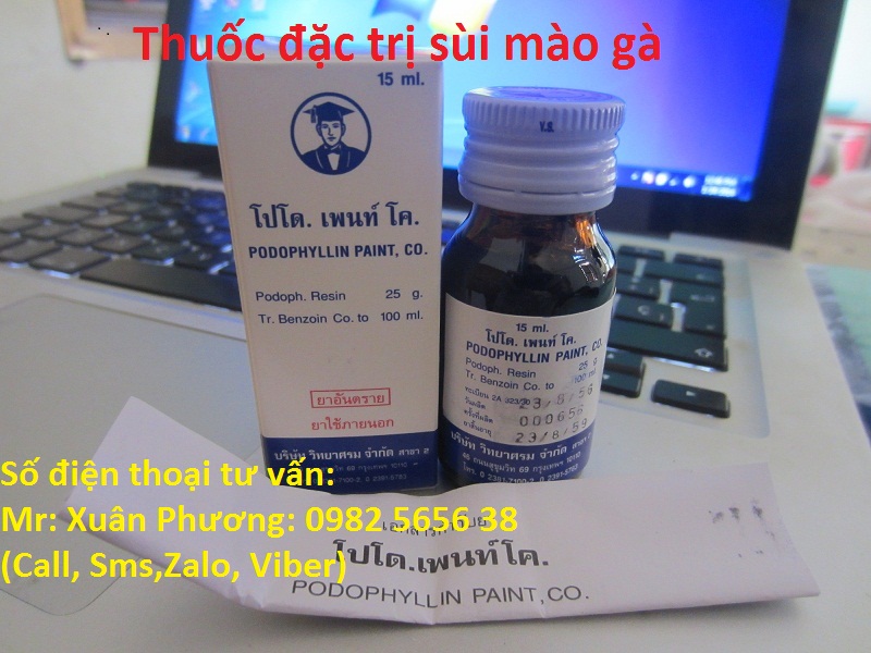 – Còn podophyllin là loại thuốc đặc trị Sùi mào gà mụn cóc của Thái lan và nước bên họ bán rộng dãi mặt hàng này,nó có tác dụng ngấm vào phần da dưới chân nốt,nó sẽ phá hủy chân nó đi, khi bạn chấm xong khoảng 20h sau bạn thấy nốt nó teo đi như cây bị thối dễ ý và khoảng 3 ngày những nốt nhỏ dần và lặn hết như chưa bị. Thuốc nó không để lại sẹo nhé,nó không đau,hay rát khi tôi hướng dẫn cách dùng cho bạn,nhiều ông nhờ bạn mua về không biết sử dụng rồi về tự ý chấm bừa bãi mai thấy đau rồi rát.