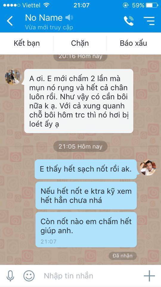 - Sau khi bôi xong thuốc từ 2 – 3 tiếng sau bạn đi rửa những nốt đã chấm thuốc bằng nước muối sinh lý hay nước sạch đều được.