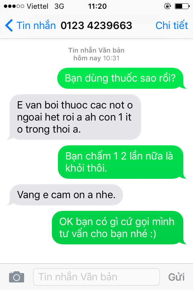 Tư vấn vui vẻ nhiệt tình trong thời gian điều trị đến khi khỏi bệnh thì thôi.